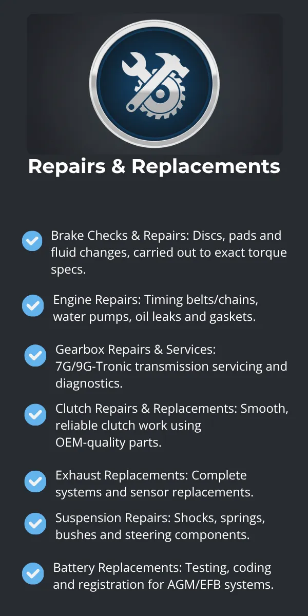 Gearbox Repairs & Services: 7G/9G-Tronic transmission servicing and diagnostics.