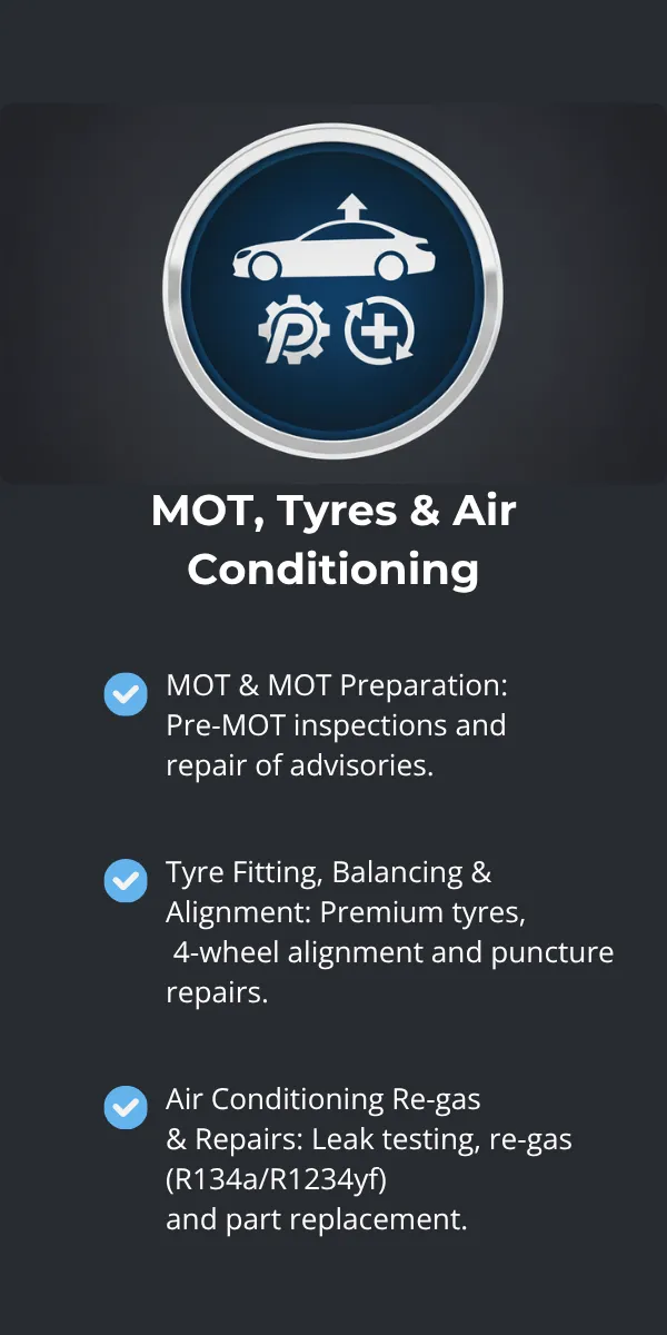 Air Conditioning Re-gas & Repairs: Leak testing, re-gas (R134a/R1234yf) and part replacement.